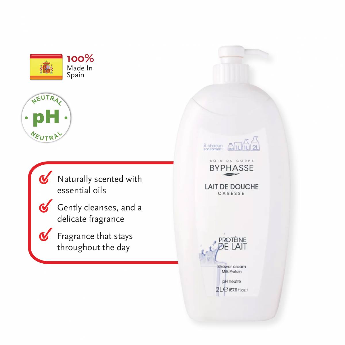 The shower cream with milk protein brings all the benefits your skin needs for a shower of sweetness.