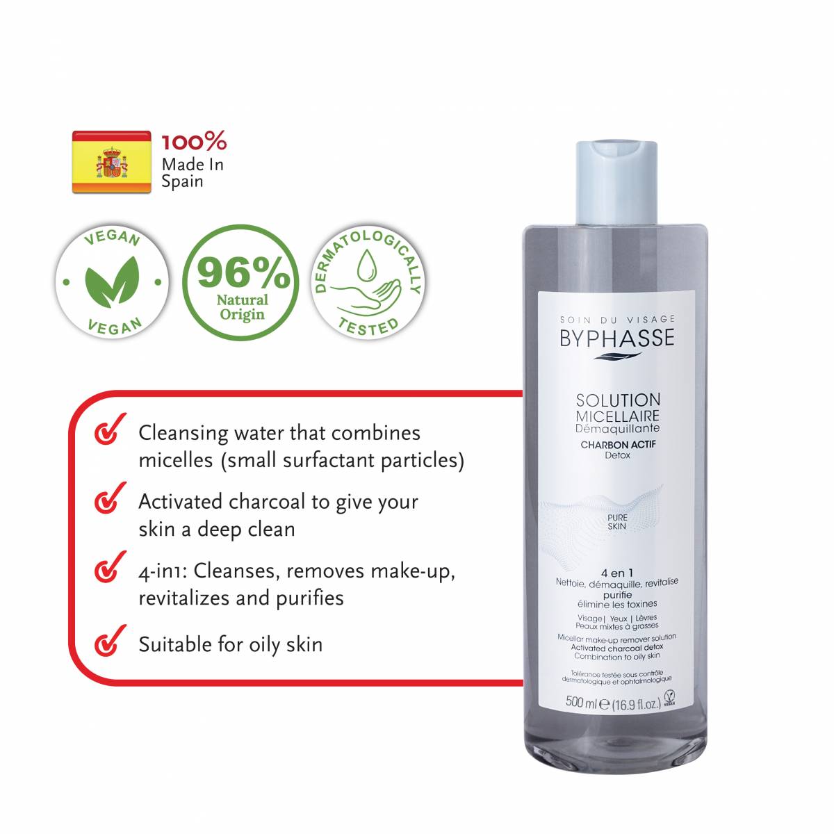 BYPHASSE Micellar Make-Up Remover Solution – Activated Charcoal Detox – Vegan