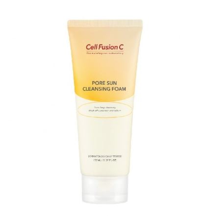 CELL FUSION C Â Pore Sun Cleansing Foam that deeply cleans pores, removing stubborn impurities like sunscreen and blackheads.