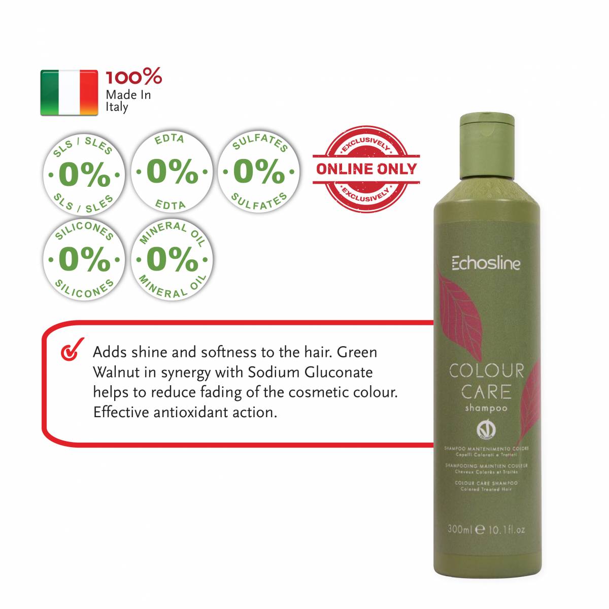 The balanced formulation of this fantastic Vegan shampoo, without SLS and SLES, brings shine and softness to the hair. The Green Walnut in synergy with the Sodium Gluconate helps to reduce the fading of the cosmetic color with an effective antioxidant action.