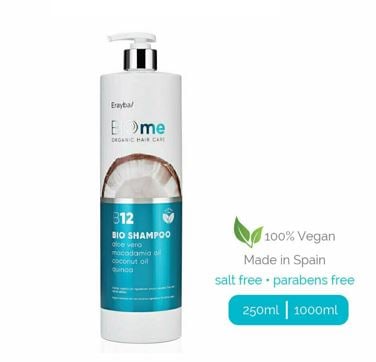 Discover the 100% vegan Erayba line. BIOme takes care of the health of your hair with organic active ingredients based on vegetable oils of coconut, macadamia, quinoa, moringa, aloe vera, karité shea, rice protein. With anti-oxidant and rejuvenating action, leaves your hair hydrated, soft, shiny and with plenty of vitality. With anti-pollution effect. For all types of hair and frequent daily use.