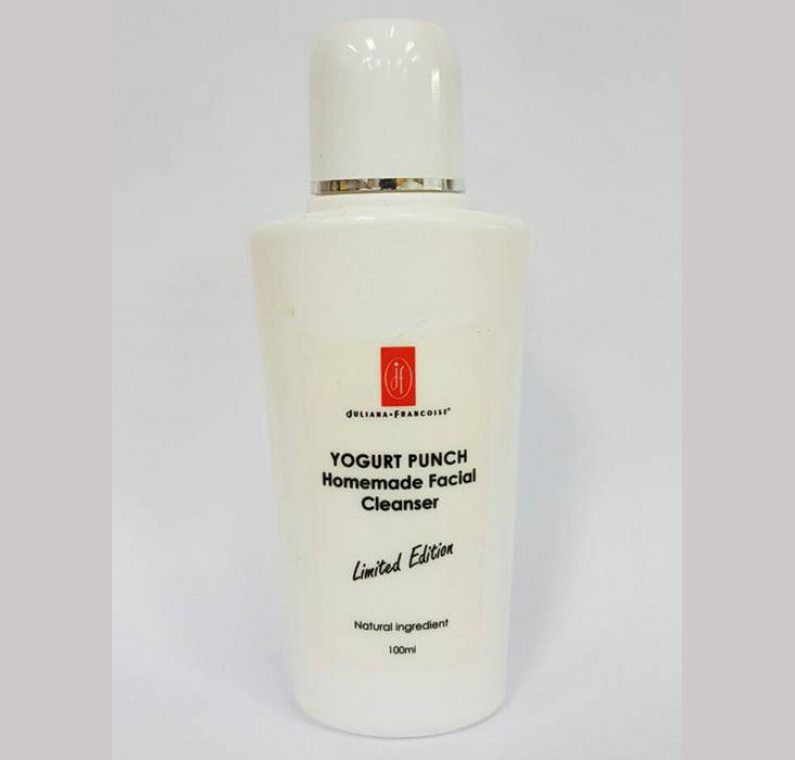 Pour 3-4 drops of yogurt punch onto the palm, apply to the face & throat, gently massage in fingertips with light, upwards stroke. Rinse with tepid water. Use twice daily, morning and evening. Followed by the appropriate Juliana.Francoise Toner and Moisturizer.