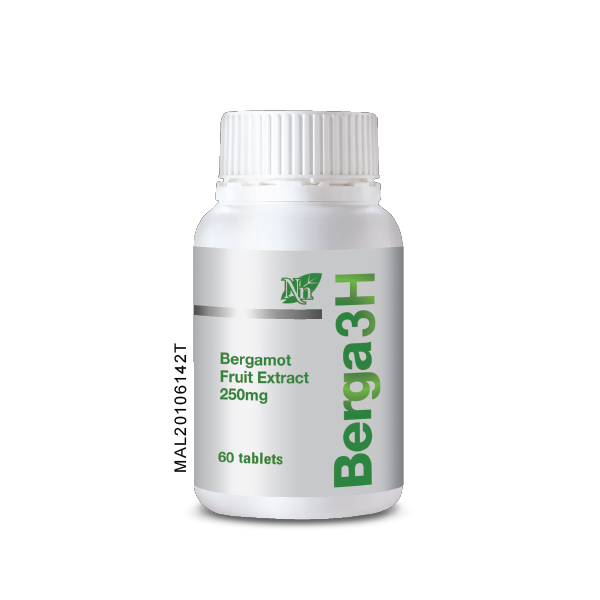 - Nn Berga3H contains 250mg Bergamonte®, a proprietary Bergamot Fruit Extract in every tablet