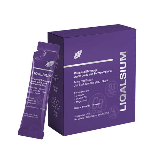 Liqalsium is a botanical beverage with an advanced and unique liposomal liquid formula rich in 4 vital bone nutrients — calcium, magnesium, vitamin D3 and ferment acai berry to support strong bones and teeth. Delicious with natural strawberry flavour! Say NO to swallowing huge calcium tablets or capsules with Liqalsium!