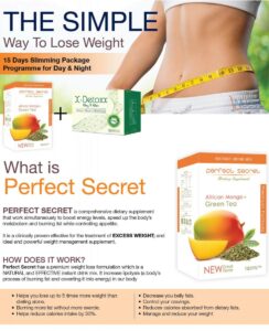PERFECT SECRET is comprehensive dietary supplement that work simultaneously to boost energy levels, speed up the body’s metabolism and burning fat while controlling appetite.